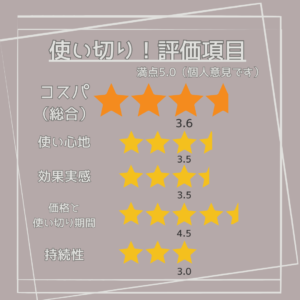 商品は安価ですが、その分使い切り期間も1ヶ月ちょいなので他の洗顔料よりは少し早い印象でした。ただ使い切りあたりのコスパとして考えるとやはり安かったので高評価です。