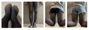 パッと見ると裏起毛履いているように見えないのにしっかり防寒できているので寒がりな方でもおすすめ!もちろんまじまじ見たり、黒×イエベ以外のカラーを選ぶと肌色のタイツにちゃんと見えます。また、写真のようにショート丈すぎるものを履くと縫い目が太ももの部分見えやすいので注意です。