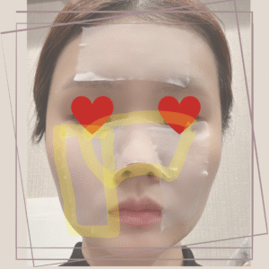 下に写真載せています。(1枚をミシン目で破って半分にして貼っています)元々のスクエアシートだと頬からフェイスラインまである大きさだったのですが、鼻横の頬と鼻、額が気になる私にとってはサイズが少し大きすぎたのですが、ミシン目で切って1回2枚の使用でちょうど良くなりました!