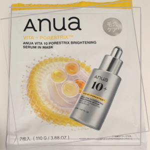 Anua(アヌア)シリーズは敏感肌でも染みずに使えることが多くて個人的に好きです。ただ美容液たっぷりで貼り付けにくさはあります。ビタミンCアイテムだけど肌が敏感で韓国スキンケアは使いにくいものが多い方にもおすすめ!