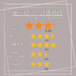 肌状態によっては刺激を感じたりメイクノリの持続力はイマイチでしたが、1品5役で毛穴をキュッと引き締まった印象になったので、ズボラさん向けの時短ケアアイテムとしては高評価でした。