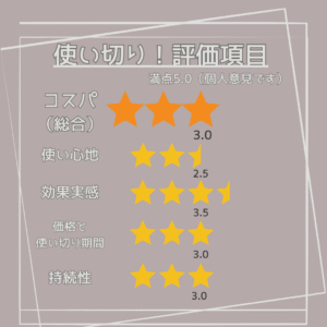 ボディスクラブの中ではまだすべすべ感と保湿を実感できたので真ん中より上の評価にしていますが、足裏や膝のしつこい角質に関してはイマイチ実感できませんでした。