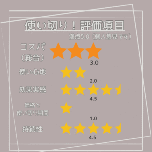 - 使い切り期間:30日(半月に1回使用 2回に分けて使いました)