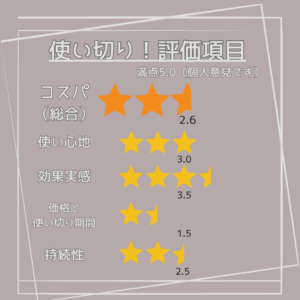 - マスカラなどと比較すると使い切りあたりのコスパが良くない