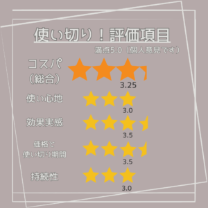 毎日使ってもコスパが悪くなかったので、スペシャルケアとして使う場合はさらに1日あたりの価格が安くなるのでコスパも良くなります。