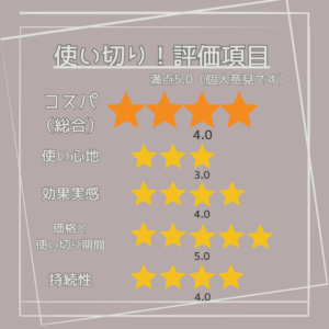 投稿者購入時の価格で評価しています。使い切り期間が5ヶ月ほどあったので高評価です。